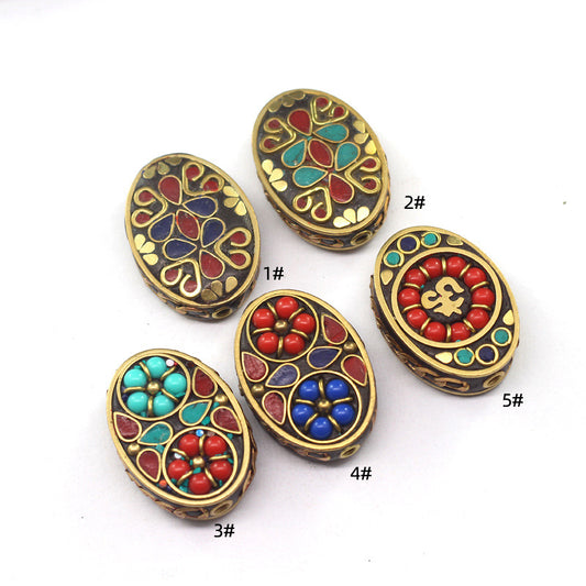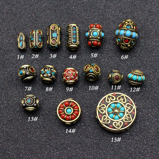 Handmade Nepalese copper beads, round beads, flying saucer beads, ethnic style necklace, thangka with beads, keychain spacer beads