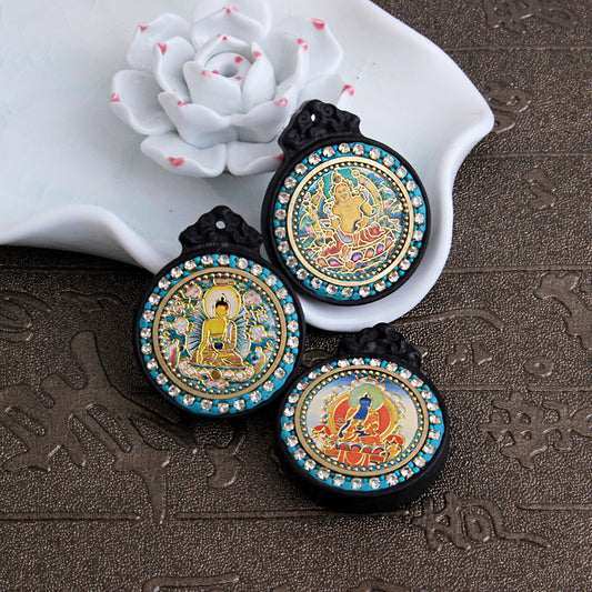 Nepal six-character mantra back cloud copper beads crystal Buddha amulet necklace accessories thangka Buddha amulet keychain accessories
