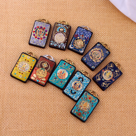 Tibetan Style Zhaxi Lamu Thangka Pendant - Female God of Wealth Buddhist Blessing Jewelry for Her/Him