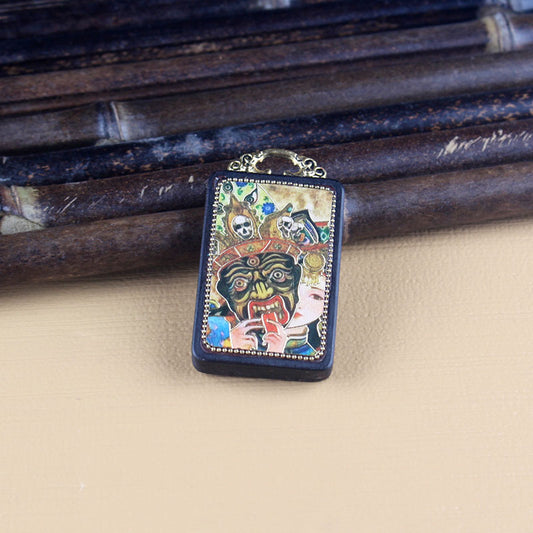 Black Sandalwood 8 Great Guardians Buddha Pendant - Vintage Nepalese Peace Amulet - Ethnic Style Necklace