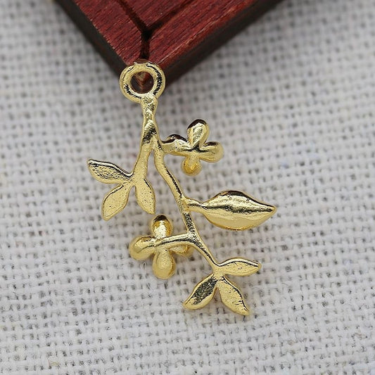 2PCS 22x14mm 24K Gold Plated Brass Branch Pendant | Nature-Inspired Charm for DIY Jewelry & Craft Projects