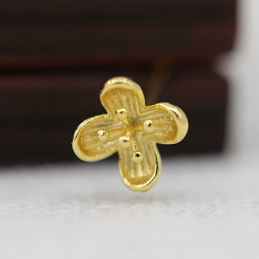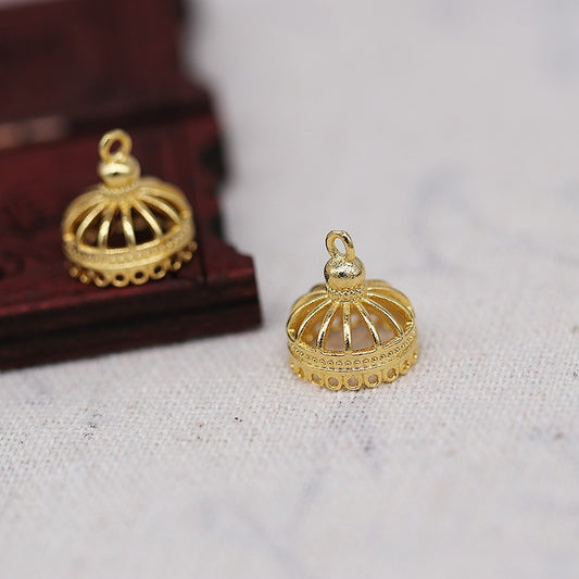 2PCS 24K Gold Plated Brass Tassel Bead Cap Charm 11x12mm, Fade-Resistant DIY Flower End Cap for Hairpins, Earrings, and Chinese Style Jewelry