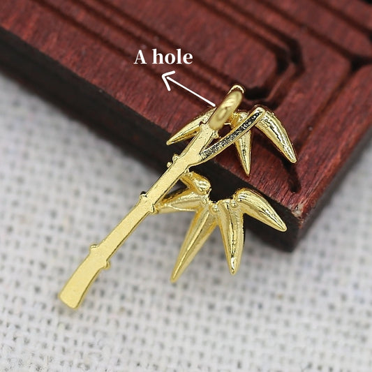 2PCS 18x9MM 24K Gold Plated Bamboo Branch Connector, Brass Charm for Hairpins & Earrings, Chinese Style DIY Jewelry Findings