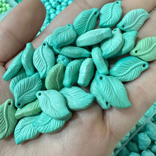 Magnesite Turquoise Small Leaf Pendant - Natural Gemstone Leaf Charm, Handcrafted Jewelry
