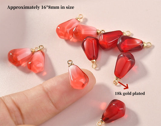 Mini Garnet Glass Pomegranate Seed Beads, 16x8mm Tiny Fruit Charm Pendant, DIY Handmade Jewelry Earring Findings
