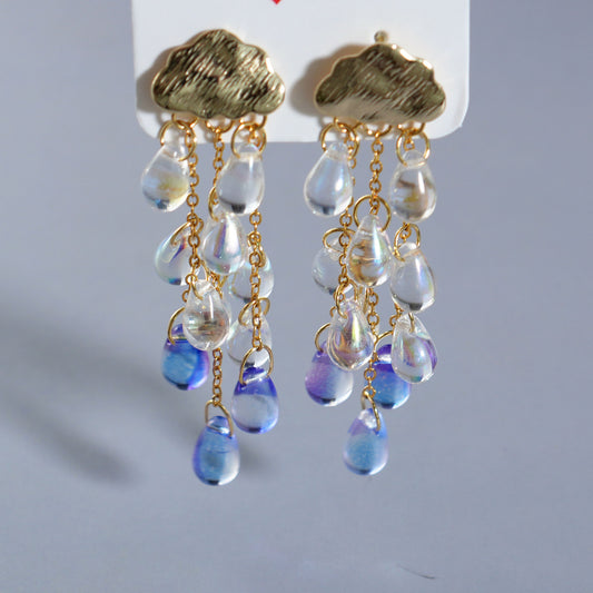 Rain Cloud Earrings, Celestial Dangle Earrings, Purple Czech Glass Crystal Rain Drop Earrings, Sky Inspired Jewelry, Teardrop Tassel Earrings for Women