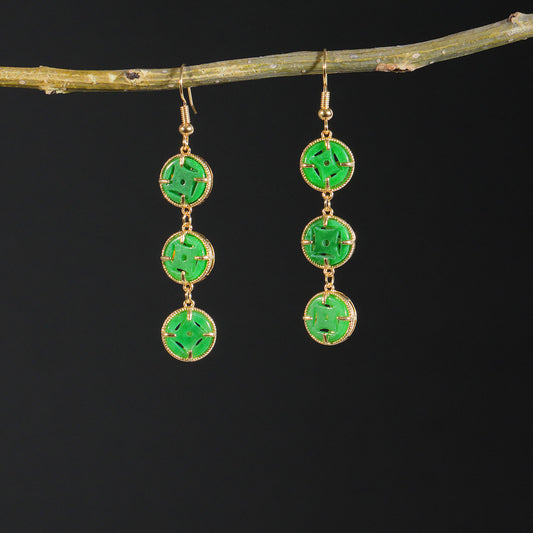 Myanmar Donut Jadeite Earring, S925 Butterfly Earring, Retro Tassels Earring, Gift for Her