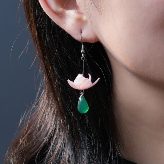 Lotus Earrings for Women, Handmade Flower Drop Earrings with Natural Green Agate, Spiritual Yoga Jewelry Gift for Her