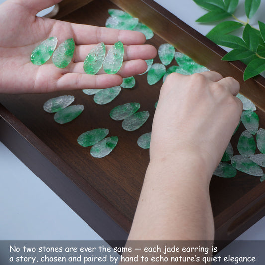 Handmade Carved Jade Teardrop Earrings for Women, Green and White Jade Dangle Earrings with Gold Hook – Elegant Oriental Jewelry for Birthday, Anniversary, Mother's Day Gift