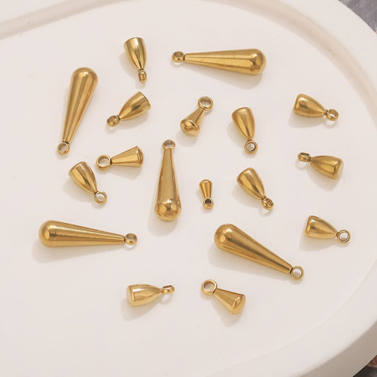 50PCS Water Drop Stainless Steel Pendant End Beads | Gold-Plated Titanium Steel | Multiple Sizes | DIY Jewelry Making Supplies