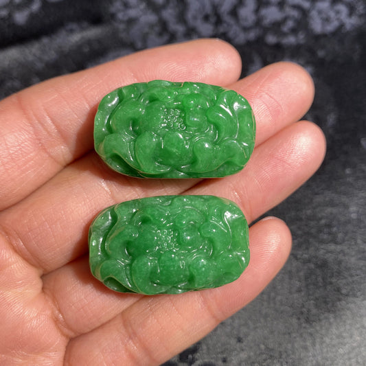 33*19*13mm Natural Jade Peony Flower Hand Carved Connector, Double Hole Jade Beads for DIY Bracelet, Necklace, Jewelry Making Supplies