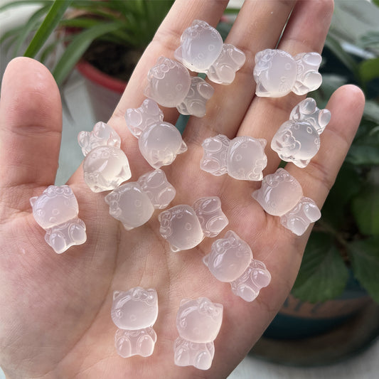 Natural Agate Hello Kitty Pendant, Carved Crystal Cat Charm, Kawaii Stone Pendant for DIY Necklace, Cute Gemstone Jewelry Supplies