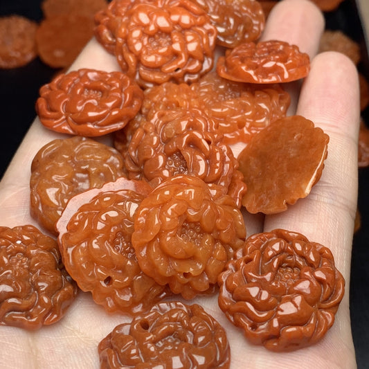 Natural Red Jadeite Peony Flower Pendant – 21x25mm Auspicious Blossom Charm for Handmade Jewelry