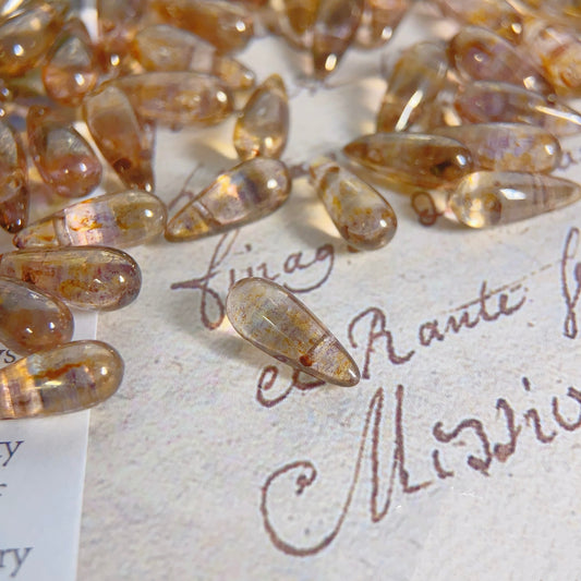 10PCS 5x12mm Czech Glass Beads - Amber Transparent Teardrop Beads for DIY Jewelry Making