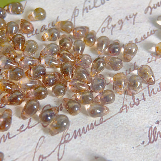30PCS 4*6mm Amber Clear Teardrop Czech Glass Beads - LiuLi Beads for Handmade Jewelry & Craft Projects