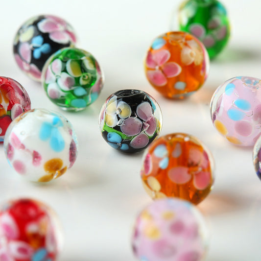 20PCS 10mm Glass Osmanthus Flower Beads, Round Glass Beads for DIY Jewelry Making, Bracelet Necklace Supplies