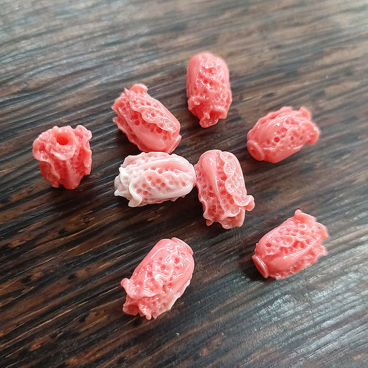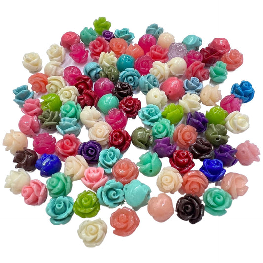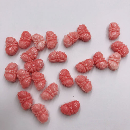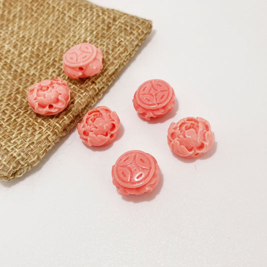 10PCS 8mm Coral Powder Pressed & Shell Polished Carved Rose Charms - Craft Embellishments for DIY Jewelry- MIxed Color
