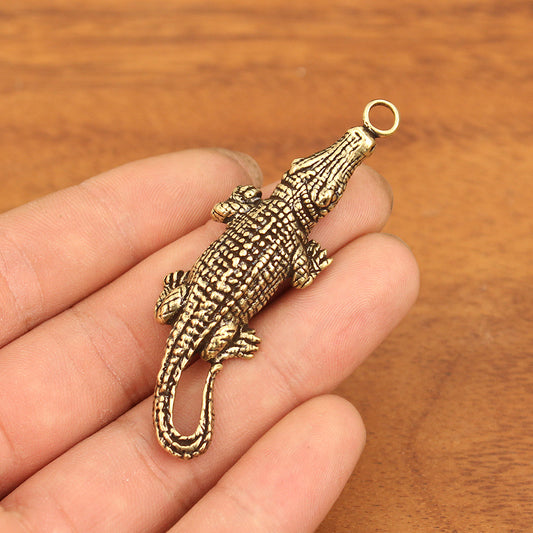 Vintage Brass Crocodile Pendant, Retro Alligator Charm, Antique Brass Animal Jewelry Making Supplies, Unique Reptile Pendant