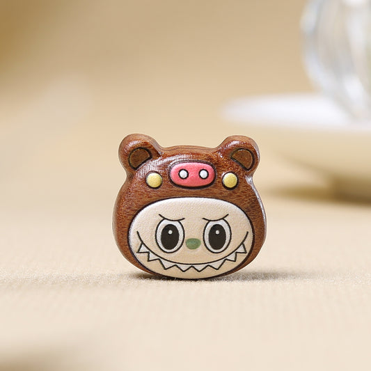 Painted Sandalwood LABUBU Charms, Handmade Lacquer Spacer Beads, Cute DIY Wood Beads for Bracelet Making, Carved Animal Beads for Jewelry