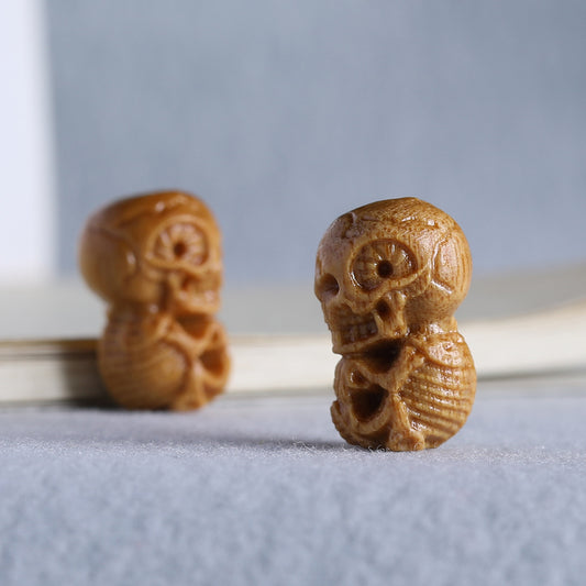 Sandalwood Carved Skull Bead, Vertical Hole Wooden Skeleton Pendant, Handcrafted Gothic Charm, DIY Jewelry Making Supplies