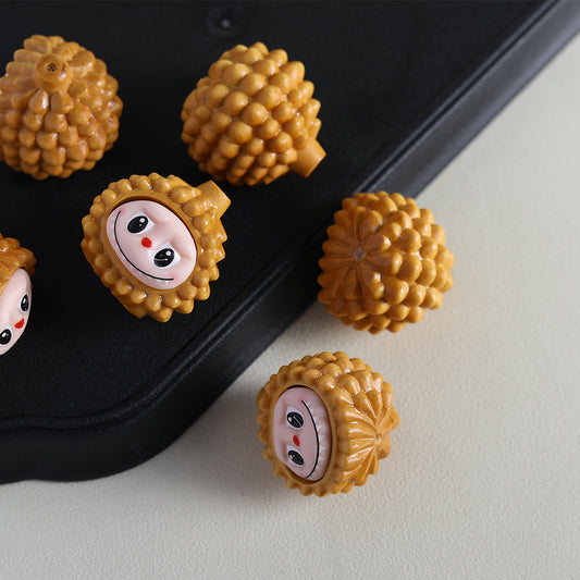 Natural Sandalwood Durian LABUBU Charm, Cute Cartoon Wooden Carved Bead, Handcrafted Solid Wood Pendant for DIY Jewelry Making