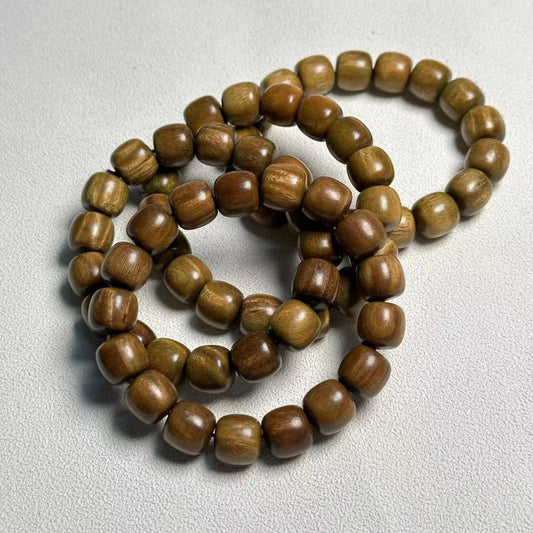 12mm Green Sandalwood Barrel Bead Bracelet | Natural Wood Bracelet for Men Women, Handmade Daily Wear Jewelry