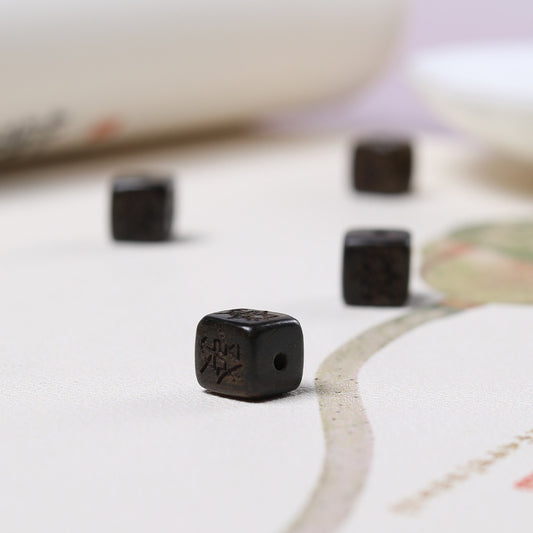 10PCS 9mm Natural Agarwood Carved Four-Sided Fortune Wooden Dice - Pendant for Necklace/Bracelet, Lucky Charm Jewelry Accessory