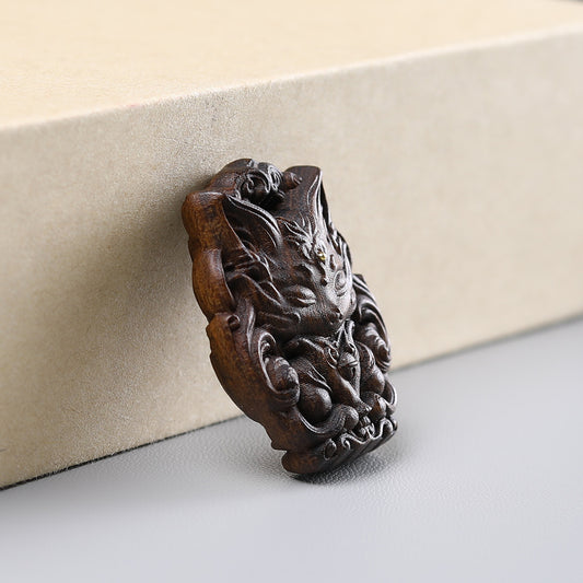 - Hand-Carved Agarwood Nine-Tailed Fox Pendant - Unique Mythical Jewelry Accessory