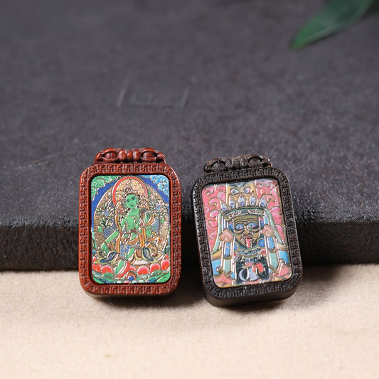 Handmade Agarwood Painted Green Tara Dzi Ram Pendant Accessories - DIY Jewelry Making Supplies for Spiritual Craft
