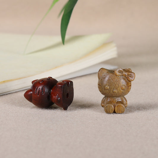 - Cute Green Sandalwood Carved Hello Kitty Charm - DIY Pendant for Bracelet & Necklace