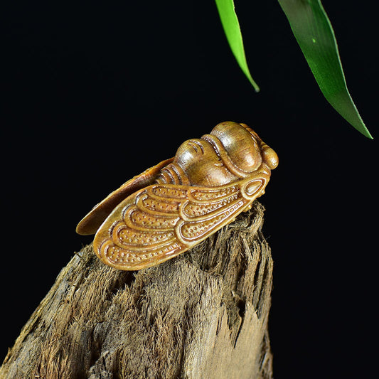 Natural Green Sandalwood Carved Cicada DIY Pendant - Handmade Insect Charm for Jewelry Making