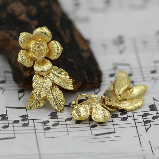 24K Gold Plated Brass Leaf Flower Charms – Tarnish Resistant DIY Jewelry Findings for Earrings, Bracelets, Necklaces, Hair Pins