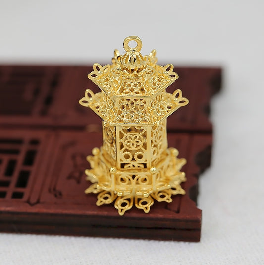 22x34mm 24K Gold Plated Lantern Pavilion Charm | Brass Vintage Pendant for DIY Earrings & Necklace Making