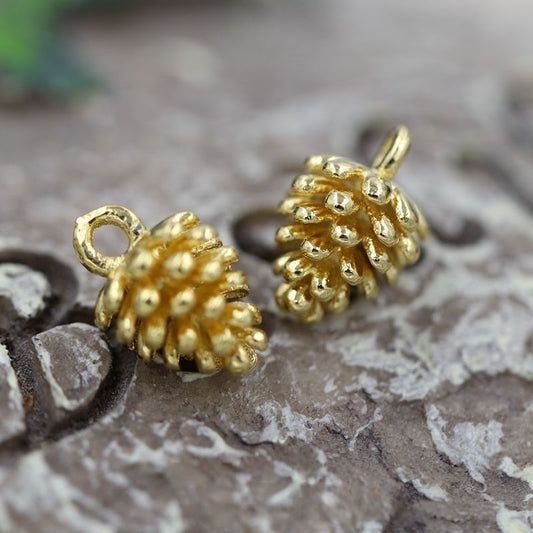 24K Gold Plated Brass Pinecone Charm, 12x8mm Pine Cone Pendant Connector, DIY Jewelry Findings for Necklace Bracelet Earrings