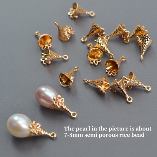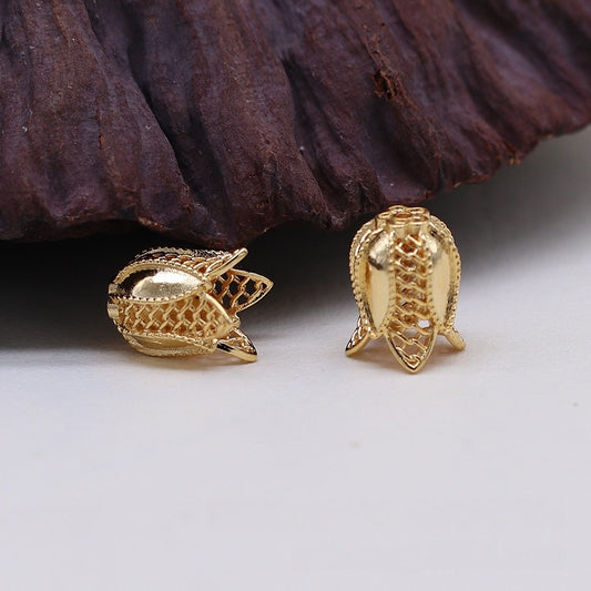 24K Gold Plated Brass Flower Bead Cap Pendant | Floral Cone Charm for Hanfu Hairpin, Necklace, Earring DIY Jewelry Making