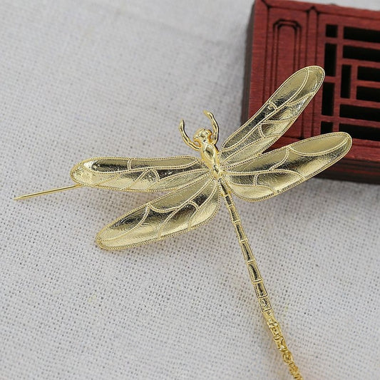24K Gold Plated Brass Dragonfly DIY Brooch | Antique Style Insect Charm for Hanfu Jewelry Making