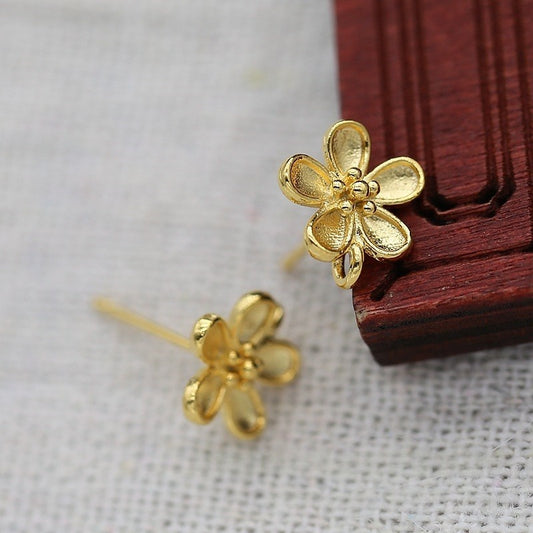 24K Gold Plated Flower Stud Earrings with Hooks, DIY Jewelry Findings with Dangles, Handmade Brass Earrings ( 1 pair ))