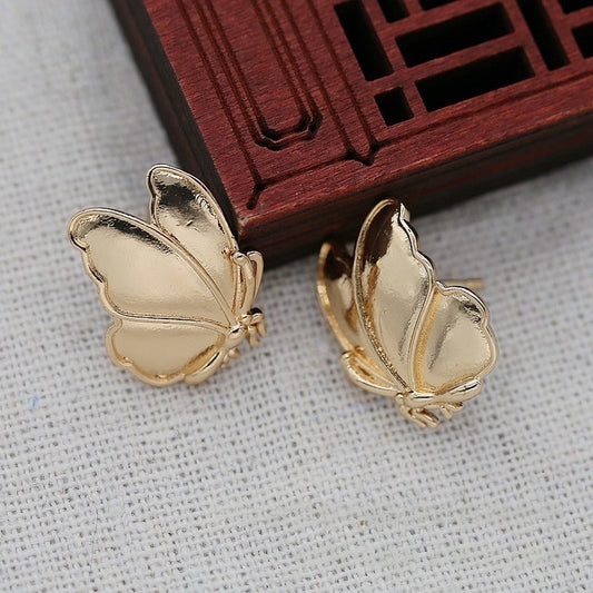 24K Gold Plated Butterfly Earrings with Hooks, DIY Jewelry Findings, Handmade Brass Stud Earrings