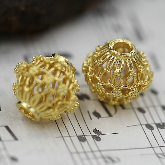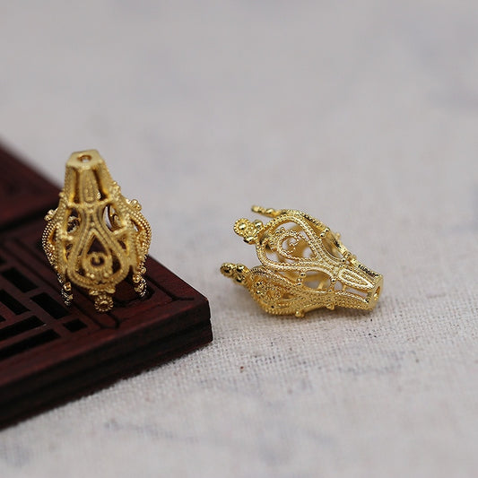24K Gold Plated Filigree Tassel Cap | Goblet-Shaped End Cap for DIY Hairpin Jewelry | Brass Cone Bead Cap for Hanfu Accessories