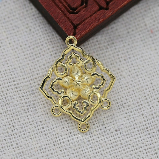 25x20mm 24K Gold Plated Brass Vintage Floral Connector | Tarnish-Resistant DIY Jewelry Findings