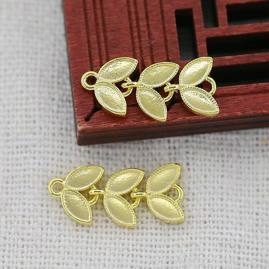 24K Gold Plated Leaf Connector | Brass Tree Leaf Link for Hanfu Jewelry & DIY Craft Supplies