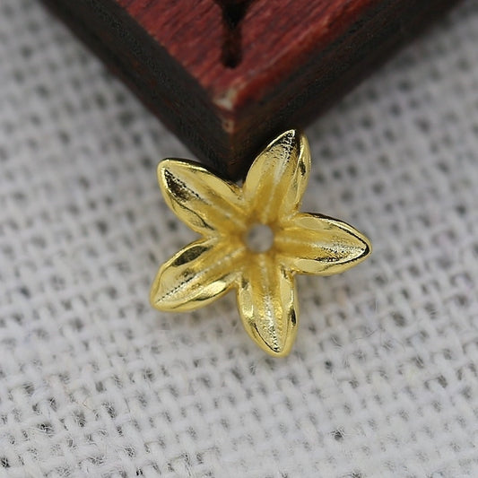 4PCS 8.5mm 24K Gold Plated 3D Five-Petal Flower Bead Cap | Brass Floral Jewelry Findings for DIY Accessories