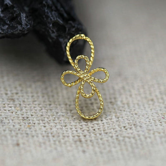 4PCS 13*7.5MM Textured 24K Gold Plated Brass Loop Connector | Abstract Floral Pendant for DIY Earrings, Necklaces & Jewelry Making