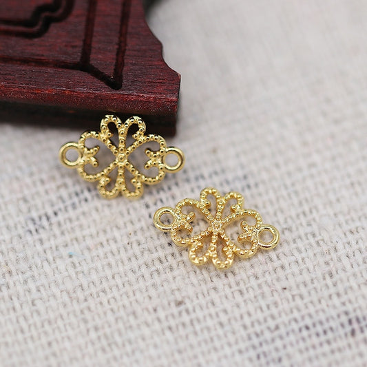 2PCS 13x17mm 24K Gold Plated Rose Connector Charm | Double Hole Brass Floral Component for Tassels & Jewelry Making