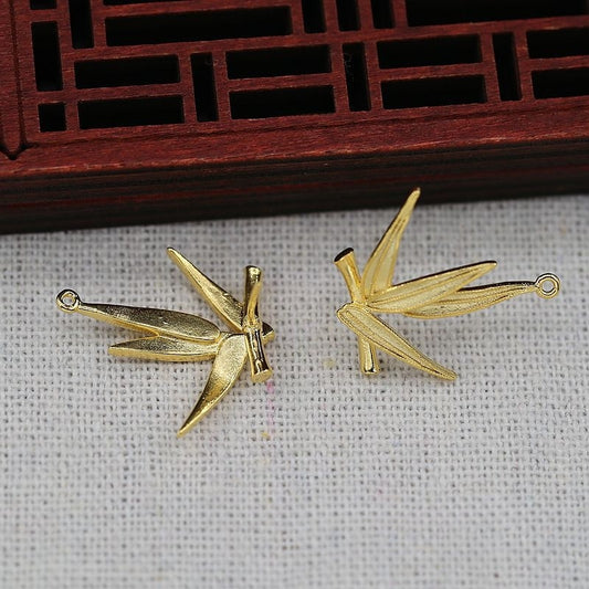 2PCS 37x27mm 24K Gold Plated Bamboo Leaf Pendant | Cloisonné-Inspired Bamboo Leaf Charm for Hanfu Hairpin & Jewelry Making