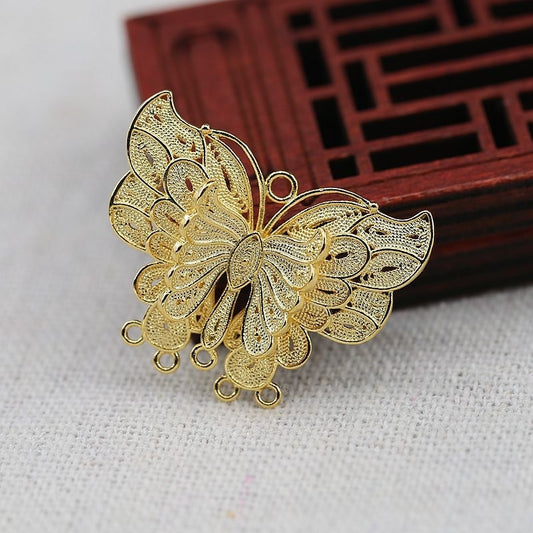 30x23mm 24K Gold Plated Layered Butterfly Pendant | Brass Charm with Loop for Earrings & Jewelry DIY