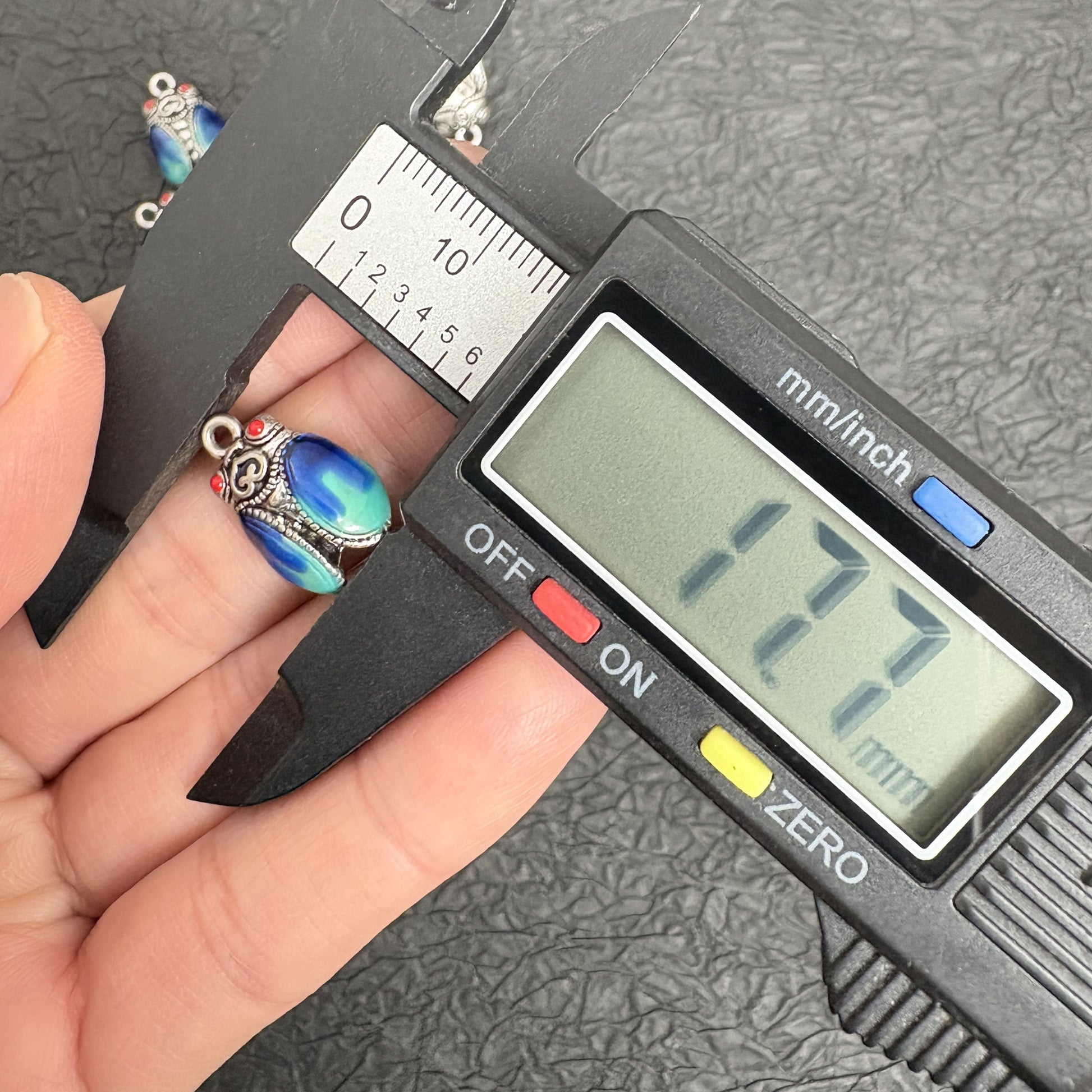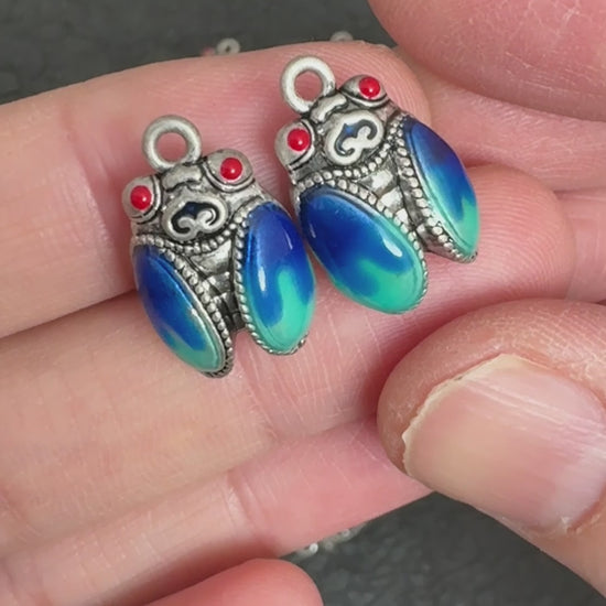 Elevate your jewelry creations with these stunning Tibetan silver cicada pendants, featuring a mesmerizing blue-green enamel gradient and vibrant red eye accents. Each piece is crafted with intricate filigree detailing, evoking the rich tradition of Tibetan craftsmanship while adding a bohemian flair to your designs.