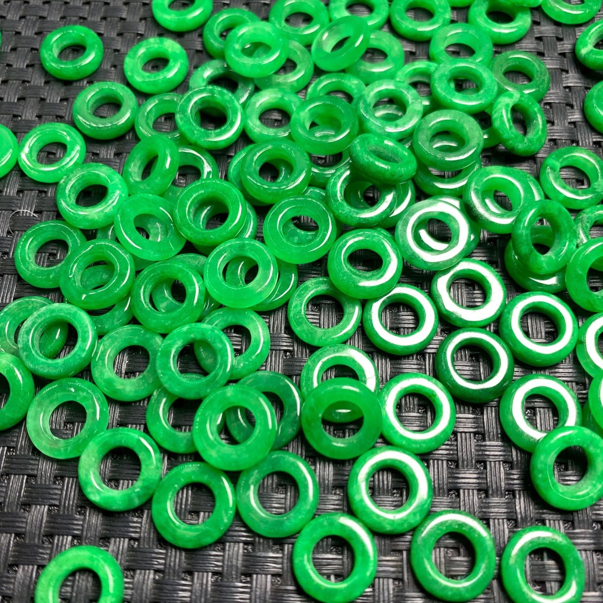 5PCS Large - Hole Green Jadeite Rings, Loose Gemstone Rings for DIY Jewelry Making, Ideal for Bracelet and Necklace Crafts