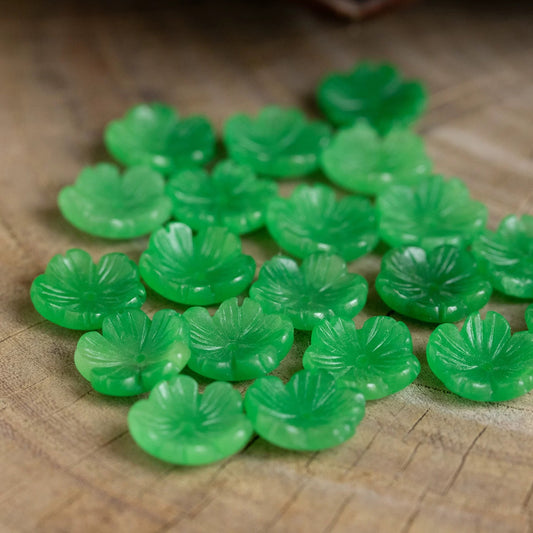 12mm Jadeite/Green Beads, 5-Petal Flower Loose Beads for DIY Jewelry Making