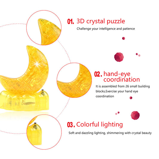 3D Crystal Puzzle Moon, Crystal Puzzle Brainteasers for Puzzlers Ages 16 and Up, with Lights, 48PCS